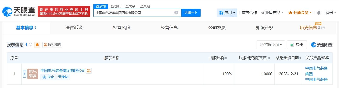 天眼查App显示,近日,中国电气装备集团西藏有限公司成立,法定代表人为雷明,注册资本1亿人民币,经营范围包括输变配电监测控制设备制造、电力设施器材制造、电力行业高效节能技术研发等,由中国电气装备集团有限公司全资持股。