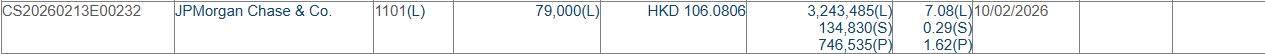 格隆汇2月16日丨根据联交所最新权益披露资料显示,2026年2月10日,豪威集团(00501.HK)获JPMorgan Chase & Co.以每股均价106.0806港元增持好仓7.9万股,涉资约838.04万港元。