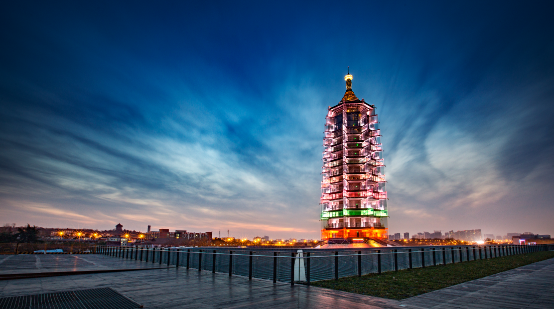 图:夜幕中的南京大报恩寺琉璃塔彩光熠熠