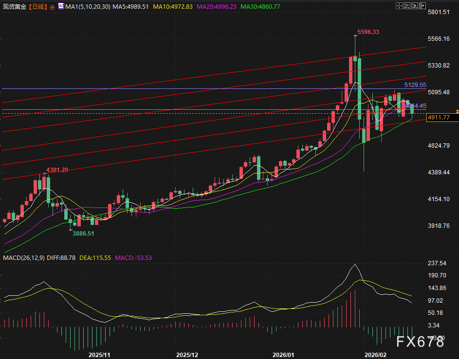 另一方面则是美俄乌三方会谈,谈总比打要好,市场提前定价会谈导致的地缘风险的缓和,目前现货黄金走出小幅探底回升,目前交投于4917,跌幅在-1.51%。
