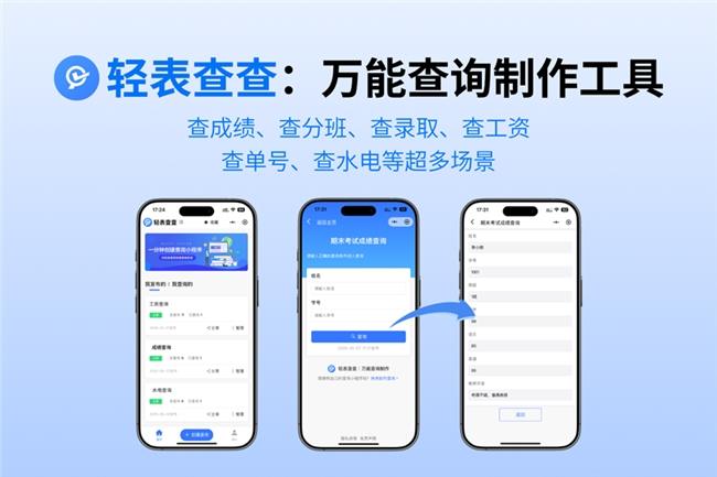 极简操作:实现零技术无门槛操作,教师上传 Excel 表格 1 分钟即可生成专属查询页面,支持数万人同时在线查询且无卡顿,全平台适配微信、钉钉等多平台,家长无需注册下载,一键即可查询。