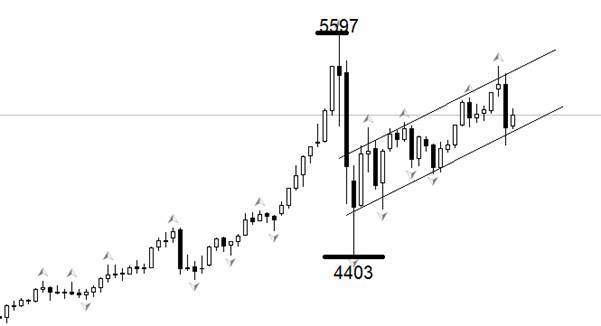 行情方面,黄金的中期高点为5597美元,该阻力仍然有效。中期低点为4403美元,该支撑位同样有效。4403以来的反弹浪段其上下限处于中期高/低点之间。虽然昨日大跌,但最新的上涨通道未被破坏。目前市场处于通道下轨附近,来来数日有向上触及通道上轨的潜力。