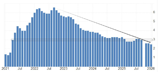 1月份核心PCE年率的预期值为3%,与前值持平。历史数据看,PCE数据已经连续两个月升高,3%的水平是2024年5月份以来的最高值。