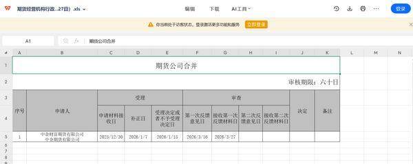 中国网财经3月30日讯 日前,中国证监会网站公示,中金财富期货有限公司(以下简称“中金财富期货”)与中金期货有限公司(以下简称“中金期货”)合并事项进入审查阶段,当前进度为“接收第一次反馈材料日”,审核期限60天。