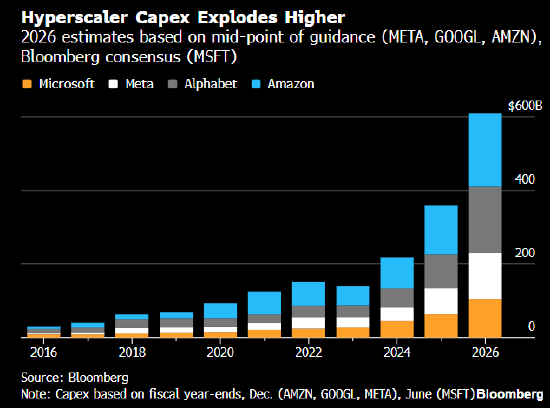 投资者正面临双重冲击:人工智能初创公司Anthropic推出的模型可能使大量软件服务过时,同时科技公司令人咋舌的支出计划也引发担忧。四大科技巨头计划今年在数据中心及相关设备上投资约6500亿美元。