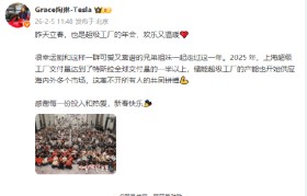 2月5日消息,特斯拉公司副总裁陶琳发微博表示,2025 年,上海超级工厂交付量达到了特斯拉全球交...