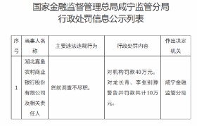 1月30日金融一线消息,据国家金融监督管理总局咸宁监管分局行政处罚信息公示列表显示,湖北嘉鱼农村...