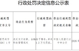 4月2日金融一线消息,据中国人民银行汉中市分行行政处罚决定信息公示表显示,城固中银富登村镇银行有...