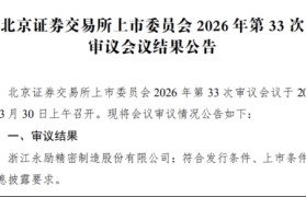 文|新浪财经上海站 十里 3月30日,北交所上市委2026年第33次审议会议上,浙江永励精密...