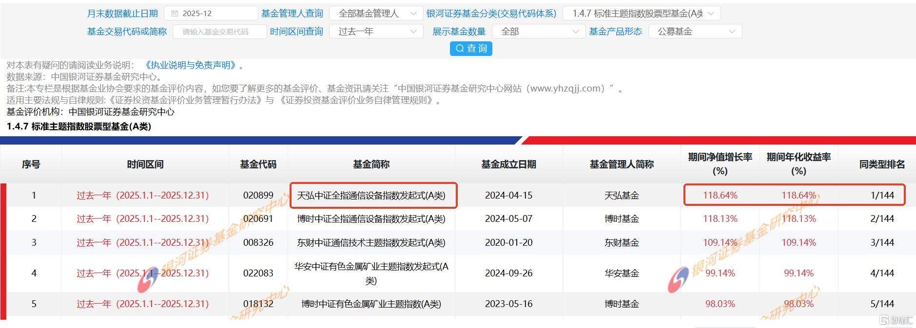 天弘中证全指通信设备指数基金(A类:020899,C类:020900)以卓越的业绩表现确立了其在行业主题指数基金中的领先地位。据银河证券数据,该基金2025年全年收益率斩获同类标准主题指数股票型基金排名第一。这一成绩不仅大幅跑赢同期被动指数基金平均回报率,更在科技成长板块中展现出极强的锐度。