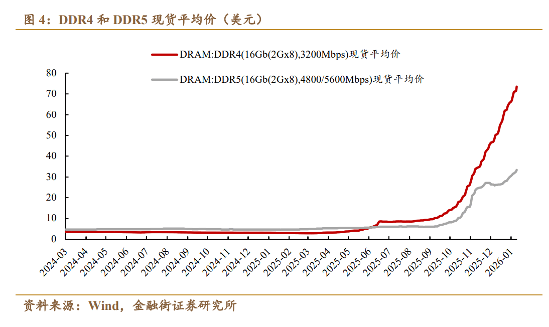 与此同时,服务器DRAM、企业级SSD需求同步提升,这些高性能产品出货量的增加也进一步挤占了其他存储产品的产能,造成消费类产品出现供给收缩,存储涨价效应从AI扩散到其他领域。