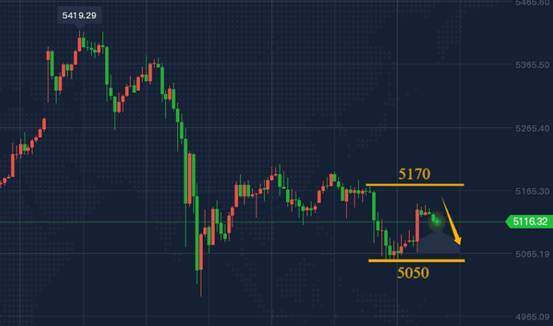 周四的观点还是很明确的,就是盯住5205压制点,冲高承压之后短空,白盘在5120企稳后直接介入多,当美盘跌破白盘低点5120也就意味着进一步下跌,最低触及5050一线企稳,今日早盘又出现了延续反弹动作,一度冲高触及至5140上方,昨晚的起跌口在5170附近,这也意味着反弹靠近了起跌后位置,这里不破将还有下探动作,一旦站稳之后将会进一步上攻。