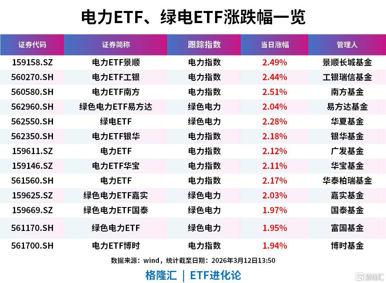 电力股集体走强,绿电ETF、电力ETF、绿色电力ETF涨超2%