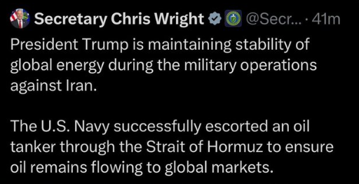 白宫表示美国海军并未护航油轮通过霍尔木兹海峡,澄清了能源部长克里斯·赖特早前发布的一条已被删除的社交媒体帖子。