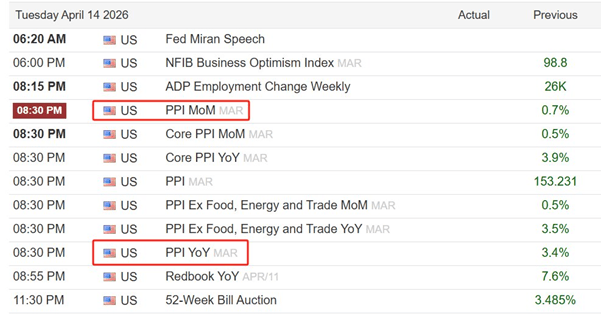 周二:美国三月份PPI数据