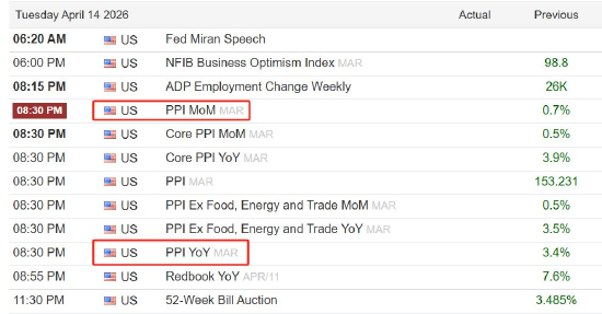 周二:美国三月份PPI数据