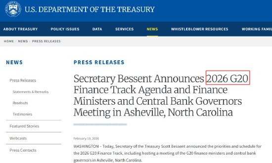 4月16日,也就是本周四,G20财长和央行行长会议将会在美国华盛顿召开。本次会议的重点内容有:全球金融监管、全球经济不平衡问题、全球债务透明化问题等等。美国财政部长贝森特宣布了2026年G20财长会议的优先事项和时间表。