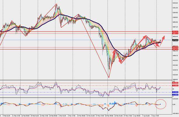 技术面: 欧元兑美元H4级别持续上行,并在48日多空分界线上方运行。此外,MACD双线与量能柱在零轴上方扩张。受中东战争推高能源成本、扰乱全球供应链影响,欧元区3月私营部门扩张力度显著减弱,出现八个月以来首次下降。