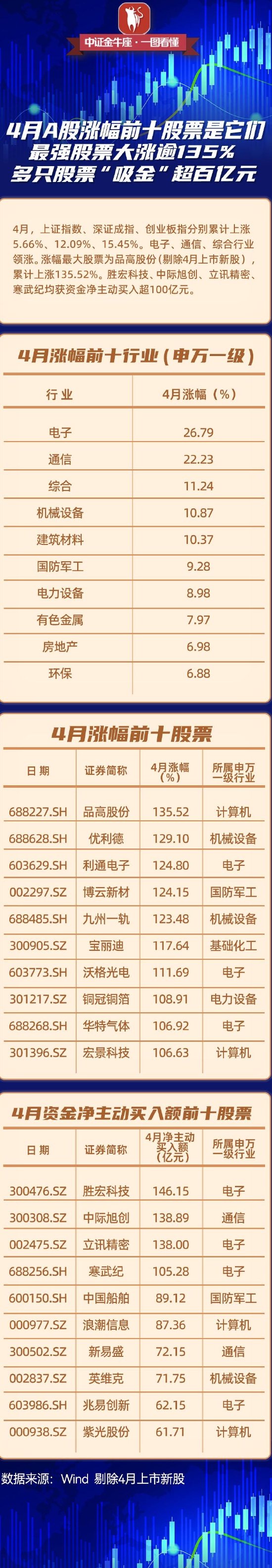 【一图看懂】最强股票大涨逾135%,4月A股涨幅前十是它们
