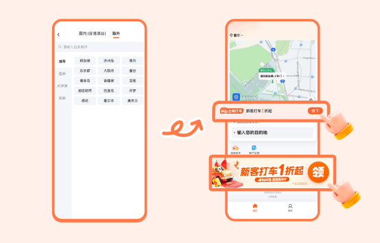 图为:升级滴滴App至最新版左上角切换城市或在海外开通服务城市自动定位享丝滑打车服务