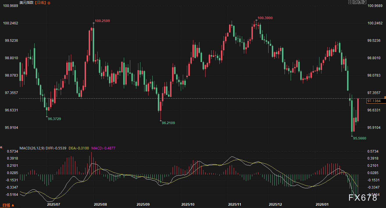 汇通财经APP讯――2026年1月26日至1月30日当周,全球外汇市场经历了戏剧性的转折。周初,美联储向纽约本地银行询问美元/日元头寸的消息,引发市场对美国可能干预日元贬值的猜测,导致美元遭遇猛烈抛售,美元指数一度跌至数月低点。然而,随着周中美联储议息会议按兵不动,以及周五美国总统特朗普正式提名前美联储理事凯文・沃什为下一任美联储主席,美元上演强势逆转,几乎收复全周失地。周线微跌0.2%,但较周内低点反弹超过1.5%。