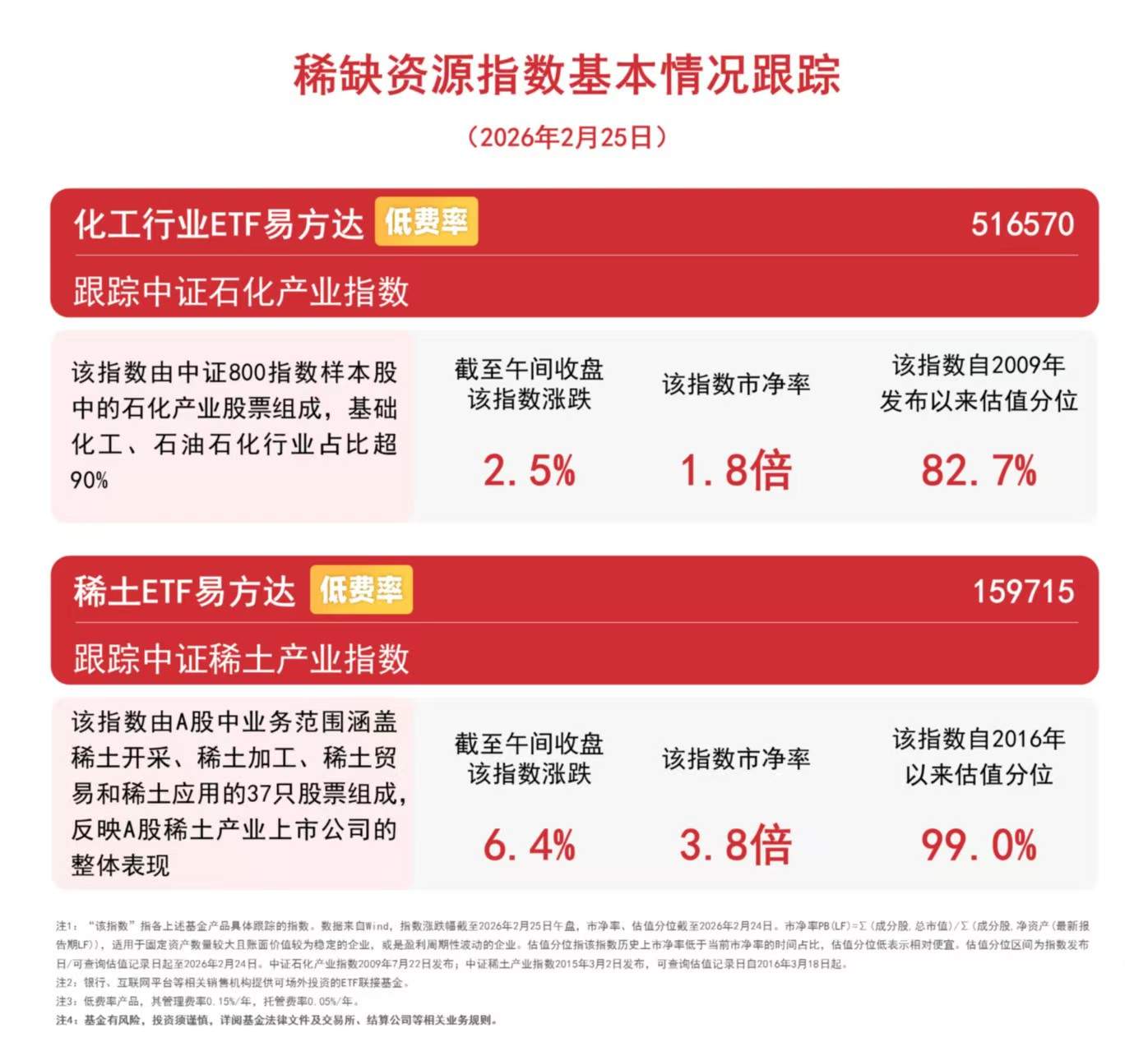 资源股再度领涨,关注化工行业ETF易方达(516570)、稀土ETF易方达(159715)等产品投资价值