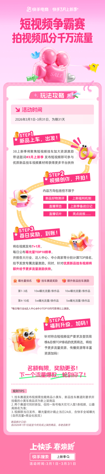 快手上新季激励加码:新品挂车、开播抢跑再瓜分千万流量及补贴