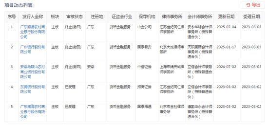 另外,深交所官网显示,当前,东莞银行、广东南海农商行IPO审核状态均为“已受理”。