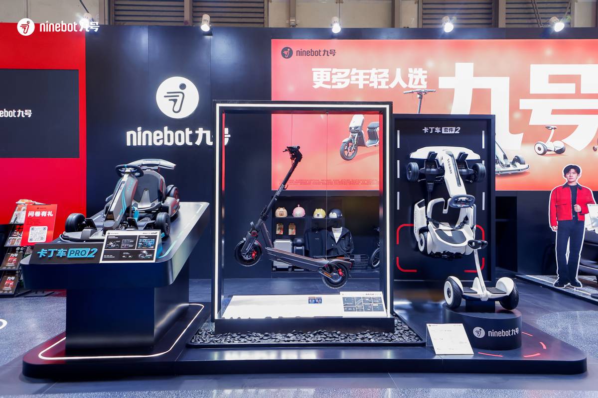 围绕这一趋势,九号在AWE 2026现场带来覆盖多场景的智能出行产品矩阵。电动滑板车展区集中展示了E3、F3、ZT3 Pro以及备受关注的MAX G3新品;平衡车领域则带来Mini九号平衡车及L6、L8系列产品;九号卡丁车Pro2、九号儿童自行车等同样在展台重磅亮相。