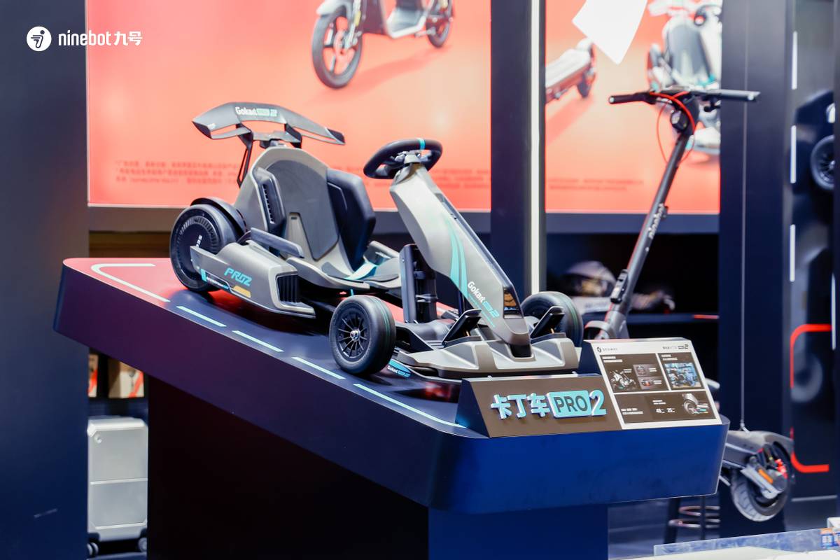 除通勤出行工具外,九号也不断拓展产品的娱乐与运动属性。本次展出的卡丁车Pro2搭载4800W风冷电机与432Wh电池系统,最高时速可达43km/h,凭借动力矢量分配系统带来沉浸式漂移操控体验。车辆还支持连接PC或游戏主机,可作为赛车模拟设备使用,进一步拓宽了智能出行产品在娱乐与运动领域的应用边界。