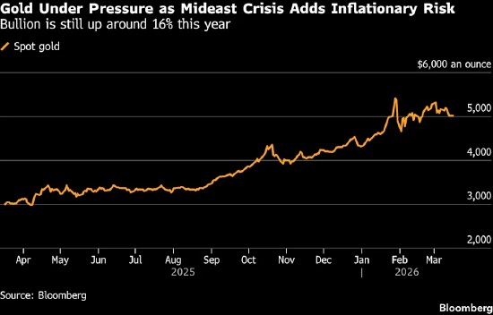 受中东战事支撑油价走高,黄金在5000美元附近震荡