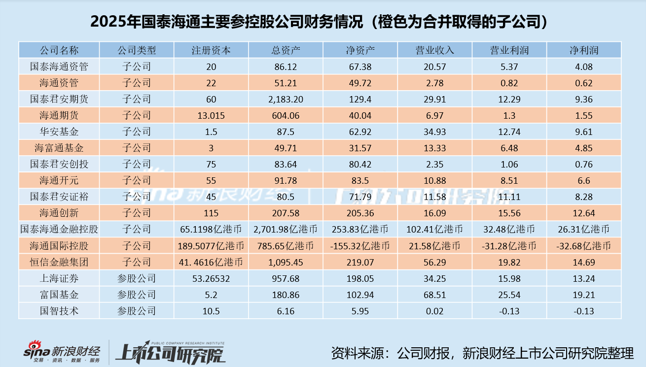 年报显示,国泰海通2025年归母净利润同比增长113.52%至278.09亿元,而利润高增主要是受益于一笔88.27亿元的“负商誉”。由于合并海通证券的对价低于标的净资产价格,国泰海通直接确认88.27亿元负商誉并计入营业外收入。