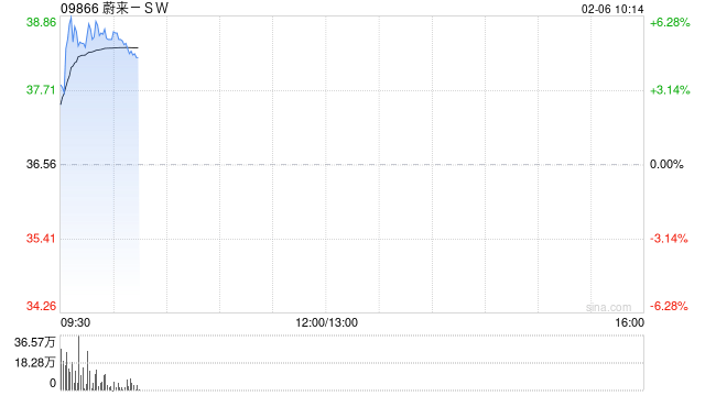 蔚来-SW(09866)盘中涨超6%,截至发稿,股价上涨5.47%,报38.56港元,成交额1.34亿港元。