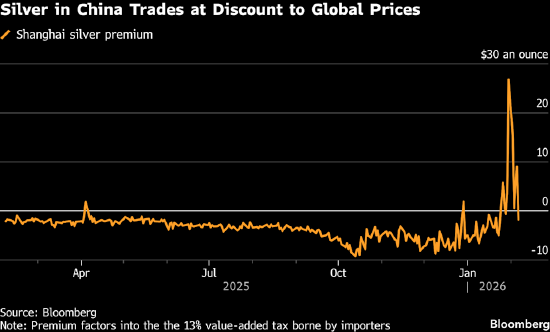 过去一周中国买盘大幅萎缩,令白银难寻支撑。国内白银价格相对国际基准由升水转为贴水,市场剧烈波动抑制买需。上海期货交易所白银持仓量跌至四年多来最低水平,反映头寸正被持续平仓。
