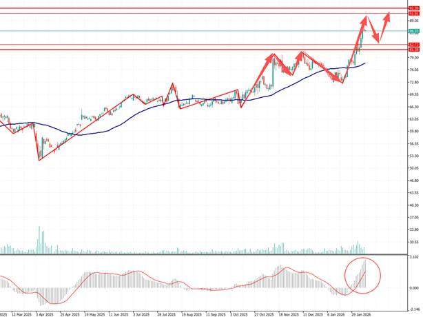 技术面:思科日线级别高位震荡,并在48日多空分界线上方运行。此外,MACD双线和量能柱在零轴上方扩张。思科Silicon One G300芯片将用于驱动全新的思科系统。这些系统专为超大规模云厂商、新兴云服务商、主权云、服务提供商及企业客户设计。