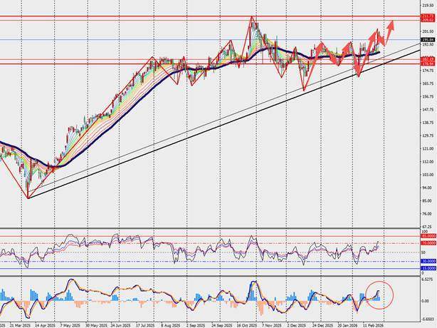 技术面:英伟达日线级别震荡反弹,并在48日多空分界线上方运行。然而,MACD双线和量能柱开始在零轴上方缩量。英伟达给出了超出预期的2027财年第一财季业绩指引。预计第一财季营收为780亿美元,大幅超出分析师普遍预测的728亿美元。