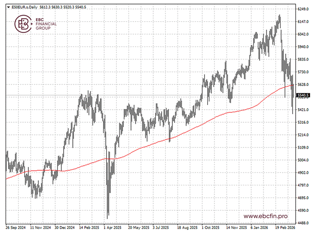 尽管市场出现波动性反弹,由于特朗普下一步行动存在不确定性,斯托克50指数仍在200日均线下方。在短期内,该指数很可能回落至5500点水平。