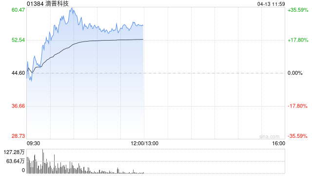 滴普科技(01384)盘中逆市涨超35%,近两个交易日股价已实现翻倍。截至发稿,股价上涨27.35%,现报56.80港元,成交额20.72亿港元。