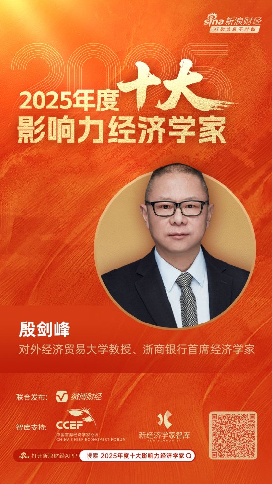 对外经济贸易大学教授、浙商银行首席经济学家殷剑峰荣膺“2025年度十大影响力经济学家”