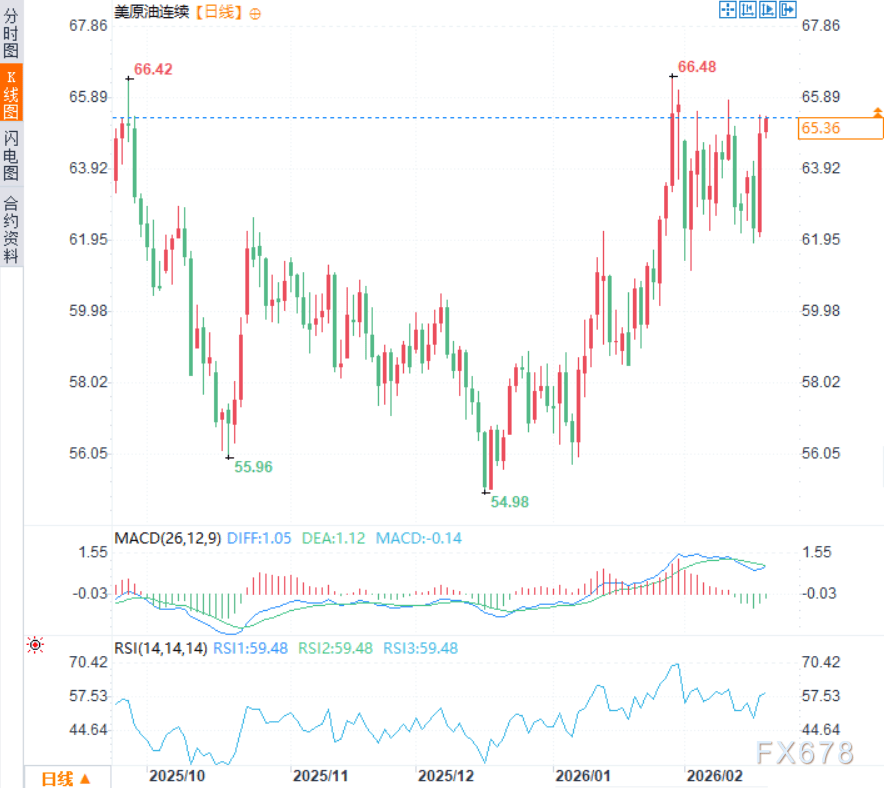 汇通财经APP讯――周四(2月19日)亚市时段,美原油价格震荡走强,现交投于每桶65.35美元附近,日内涨幅约0.45%,周三油价飙升逾4%,因美国副总统万斯公开表示,伊朗在本周核谈判中未能回应美方核心“红线”要求,特朗普总统保留动用军事力量的权利,市场地缘风险溢价急剧回升。