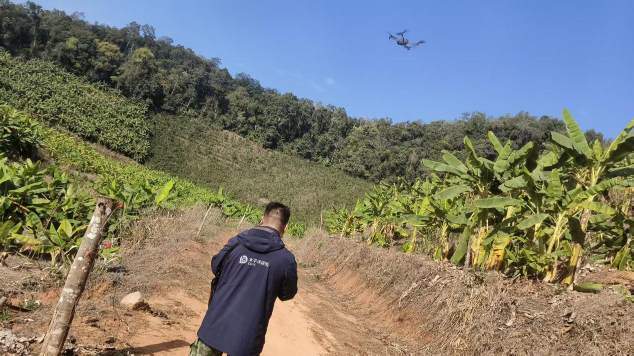 接到报案后,中国太保产险的值班查勘员迅速响应。由于受损区域地形复杂,传统人工丈量难度大且效率低,查勘员果断启用无人机进行精准航拍定损。随着无人机升空,受损区域被清晰划定,作物损失情况被详细记录。