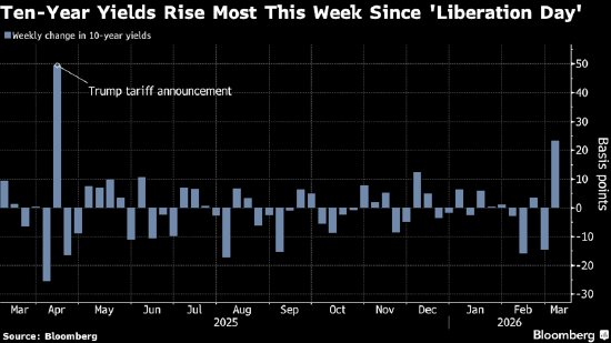 在规模达31万亿美元的美债市场中,本周的走势正在奠定基调。投资者将焦点放在能源成本及其对全球通胀和央行政策可能产生的连锁影响上,而非最新出炉的劳动力市场疲软信号。