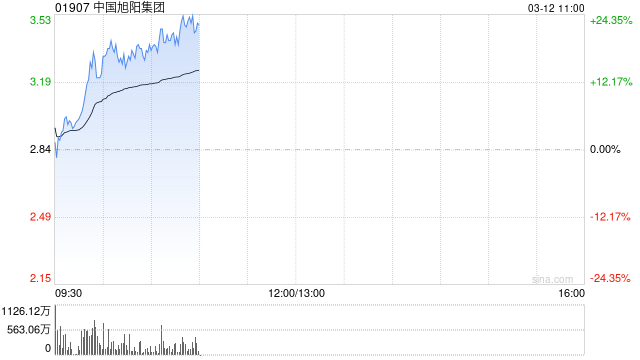 中国旭阳集团(01907)盘中大涨25%,截至发稿,股价上涨22.89%,现报3.49港元,成交额7.30亿港元。