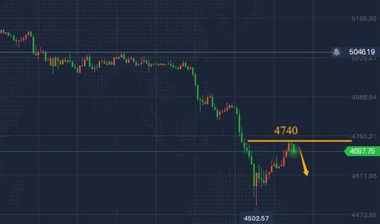 昨晚大跌之后打出4500关口低点后反弹,目前黄金报价4700附近,今日压力在4740/42位置,关注黄金反弹靠近压力位置布局空,如果提前承压,那还是根据实时走势调整做空点位,紧跟弱势节奏,上破4742认输离场。截止目前反弹最高触及4735位置,结合此前时间节点规律,黄金往往午间见高,午后开跌,目前4735有望成为日内高点,不必卡点,建议午后4700附近直接先行放空上车,以防踏空行情,如果欧盘出现抗跌再考虑调仓调整做空位置即可,今天周五就不看新低了,如果能够刷新低点那么势必还是要跟空一波。