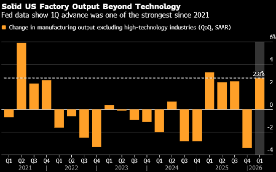 继2025年底的疲软表现后,美国制造业产值在第一季度反弹,且增长扩大到人工智能领域以外。
