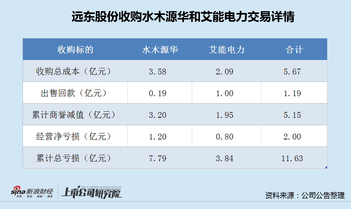 不仅如此,为切入智能电网、电力工程等领域,远东股份还曾高溢价收购水木源华和艾能电力,不过交易后都未能完成承诺业绩,最终又先后将其出售。由于高买低卖、商誉减值和标的公司经营亏损,远东股份仅这两起并购的损失就高达11亿。