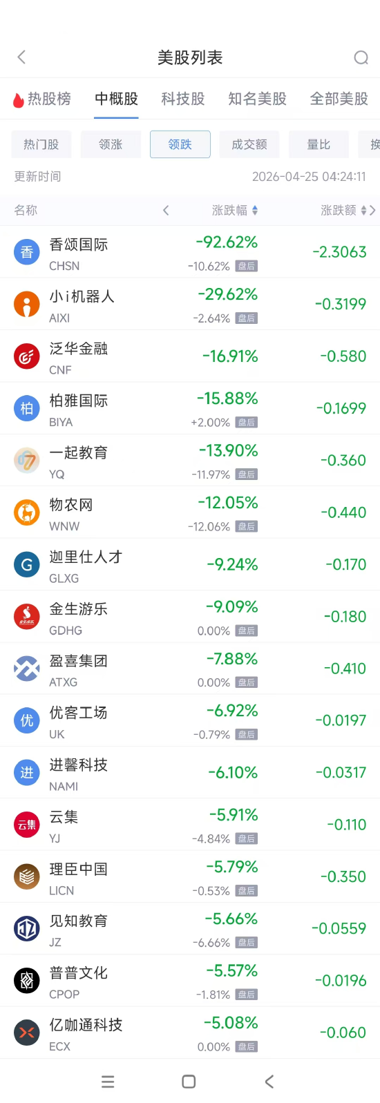 (截图来自新浪财经APP 行情-美股-中概股热门板块)下载新浪财经APP